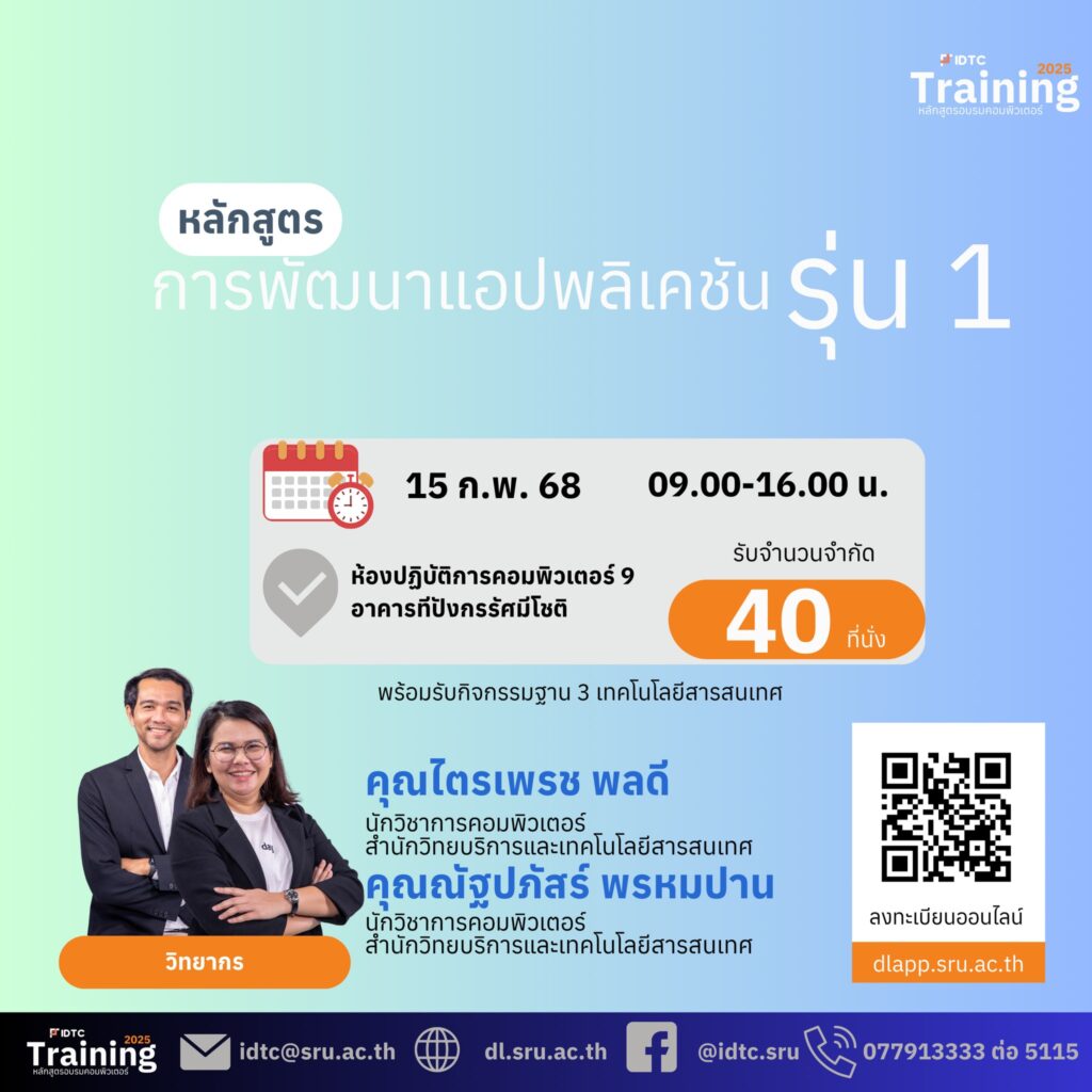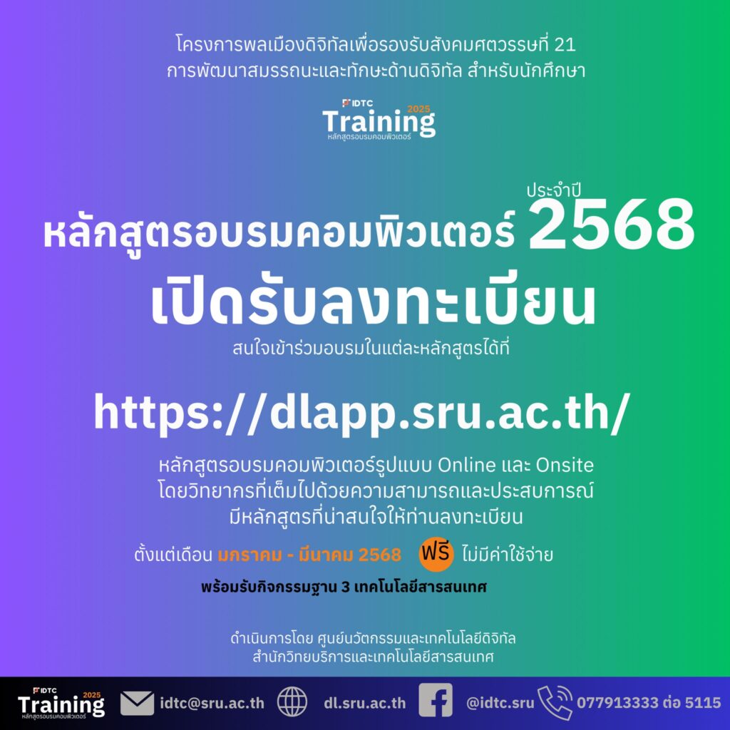 ผู้สนใจสามารถสมัครเข้าอบรมได้ที่ https://dlapp.sru.ac.th/