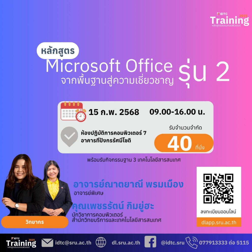 Microsoft Office จากพื้นฐานสู่ความเชี่ยวชาญ รุ่นที่ 2 (เวลา 09.00-16.00 น. 6 ชั่วโมง) 15/02/2568