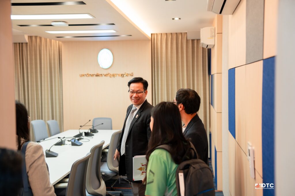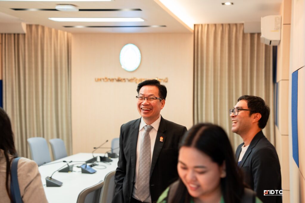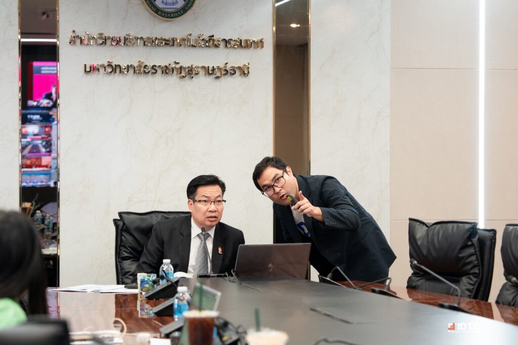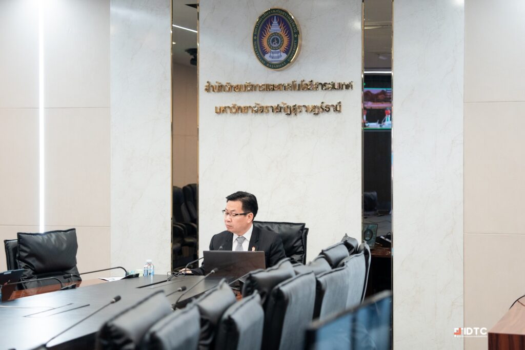 วันที่ 2 กรกฎาคม 2568 — ศูนย์นวัตกรรมและเทคโนโลยีดิจิทัล มหาวิทยาลัยราชภัฏสุราษฎร์ธานี ให้การต้อนรับและอำนวยความสะดวกแก่ ผศ. ดร.วัฒนา รัตนพรหม อธิการบดี พร้อมคณะผู้บริหาร ในโอกาสเข้าร่วมประชุมออนไลน์การชี้แจงงบประมาณรายจ่ายประจำปีงบประมาณ พ.ศ. 2569 ณ ห้อง INNO Conference ชั้น 5 อาคารทีปังกรรัศมีโชติ ซึ่งได้รับการออกแบบและติดตั้งระบบเทคโนโลยีเพื่อรองรับการประชุมออนไลน์ระดับมหาวิทยาลัยและหน่วยงานภายนอกอย่างเต็มรูปแบบ