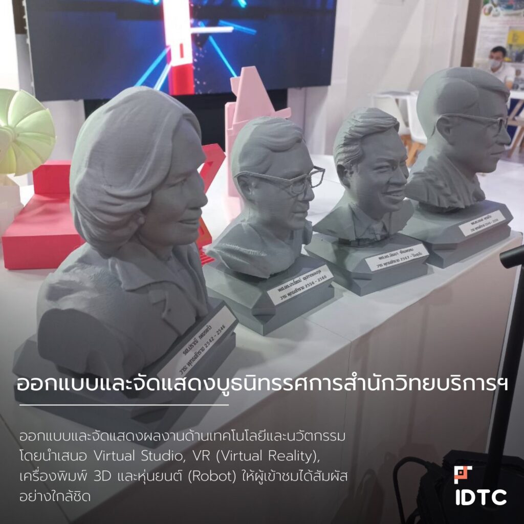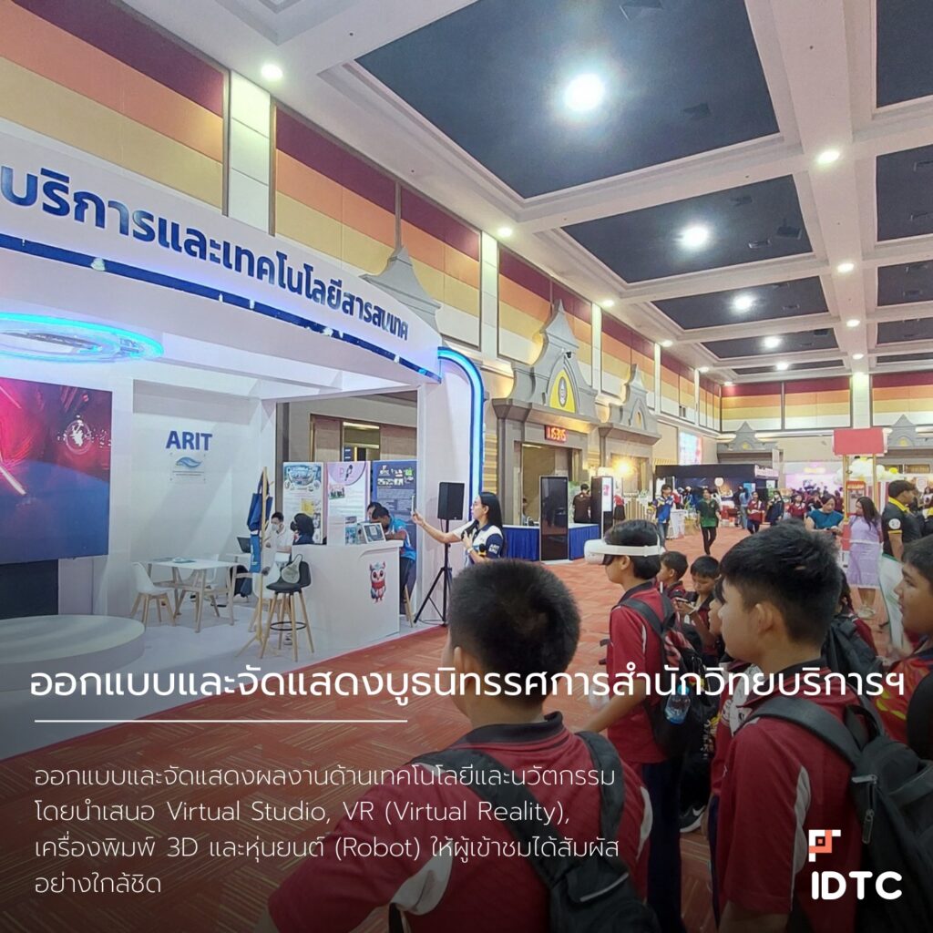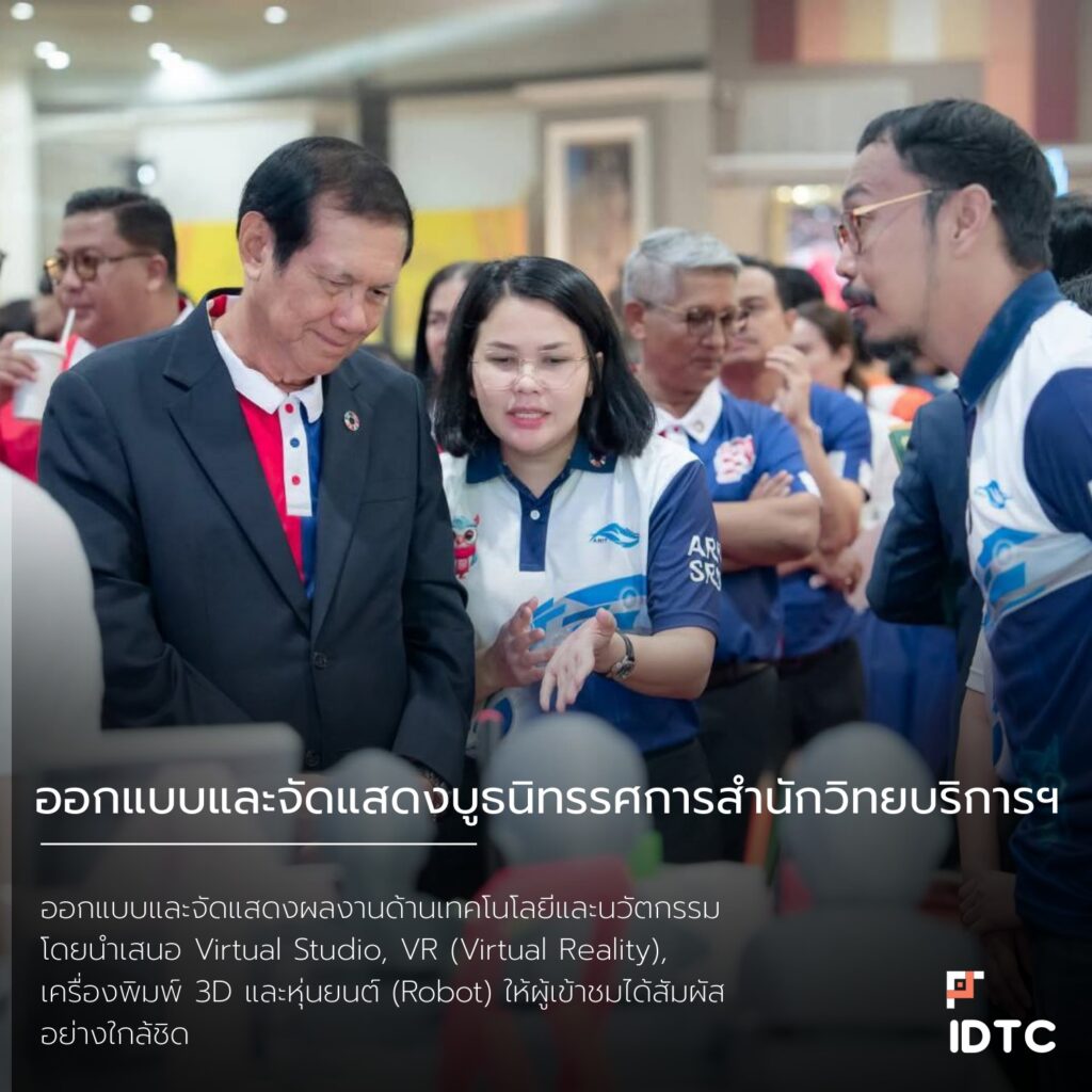ออกแบบและจัดแสดงผลงานด้านเทคโนโลยีและนวัตกรรม ได้แก่ Virtual Studio, VR (Virtual Reality), เครื่องพิมพ์ 3D และหุ่นยนต์ (Robot) พร้อมการออกแบบบูธที่ครบทั้งจอ LED ฉาก แสงไฟ และสื่อประกอบการนำเสนอ