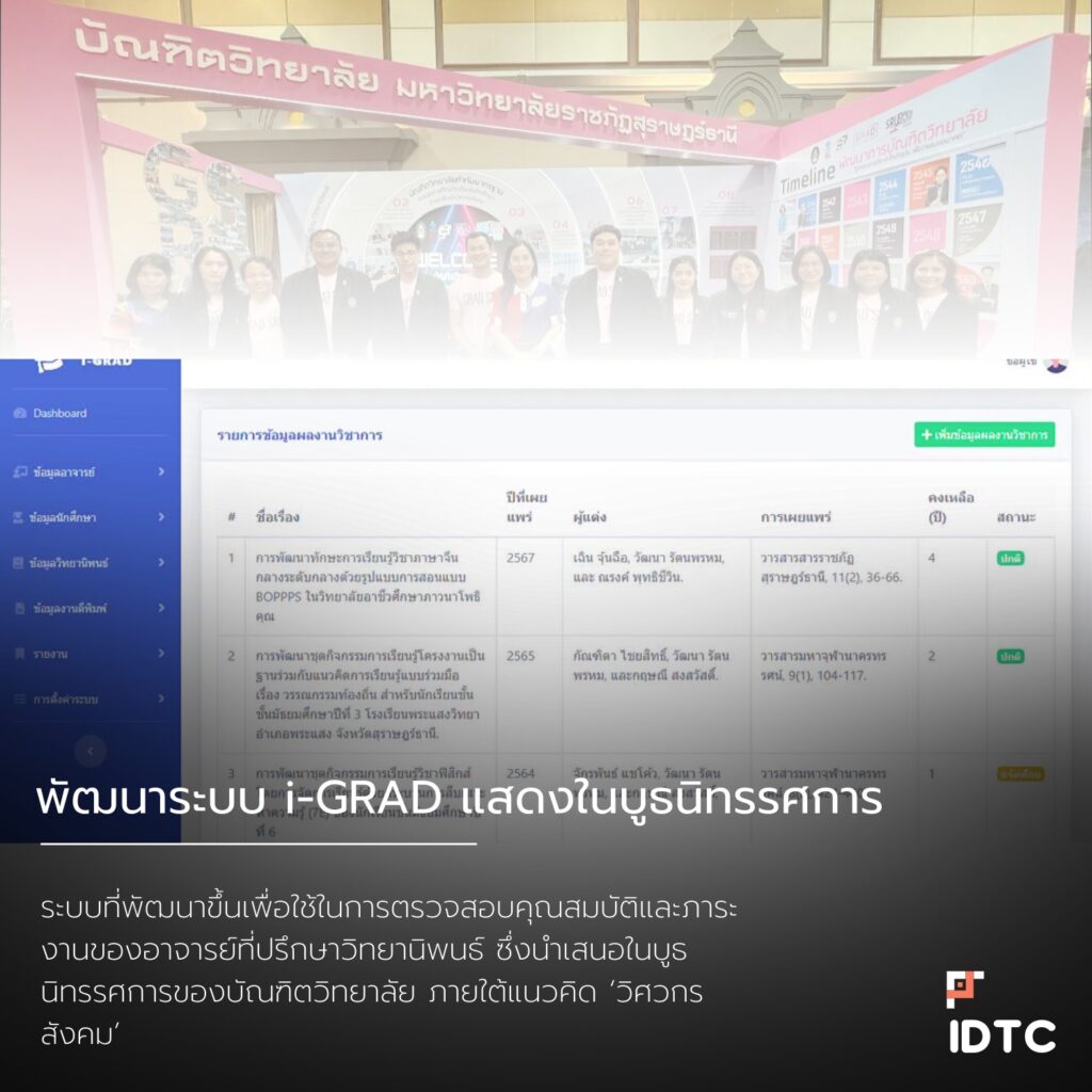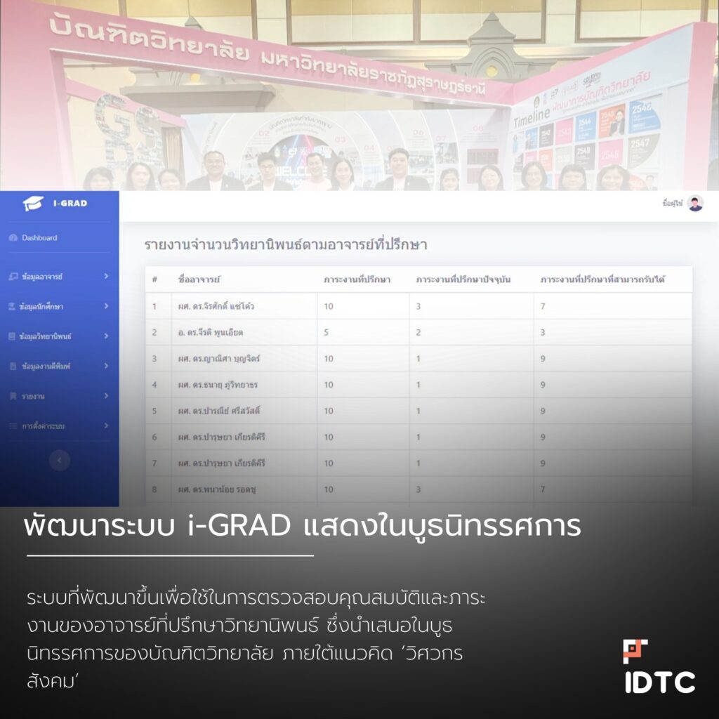 ระบบที่พัฒนาขึ้นเพื่อใช้ในการตรวจสอบคุณสมบัติและภาระงานของอาจารย์ที่ปรึกษาวิทยานิพนธ์ นำเสนอในบูธบัณฑิตวิทยาลัย ภายใต้แนวคิด “วิศวกรสังคม” เพื่อสร้างสมดุลระหว่างคุณภาพอาจารย์และการดูแลนักศึกษา